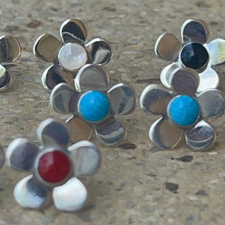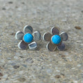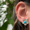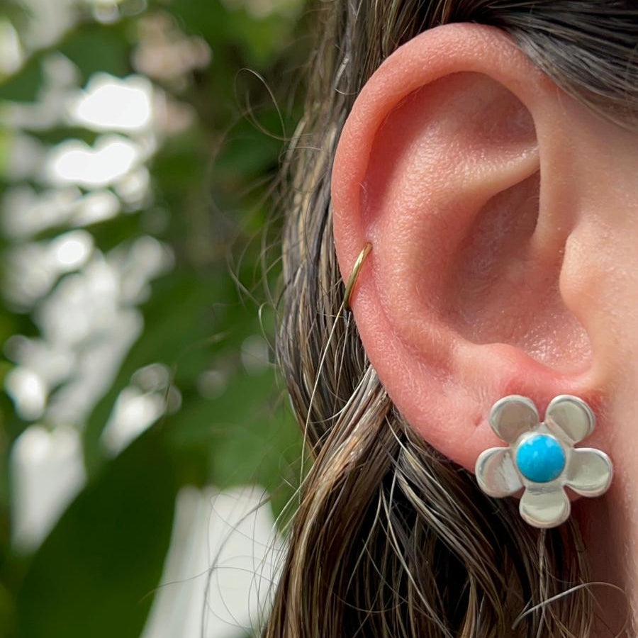 עגיל מיני פלורה- פרח משובץ באבן טורקיז טבעית